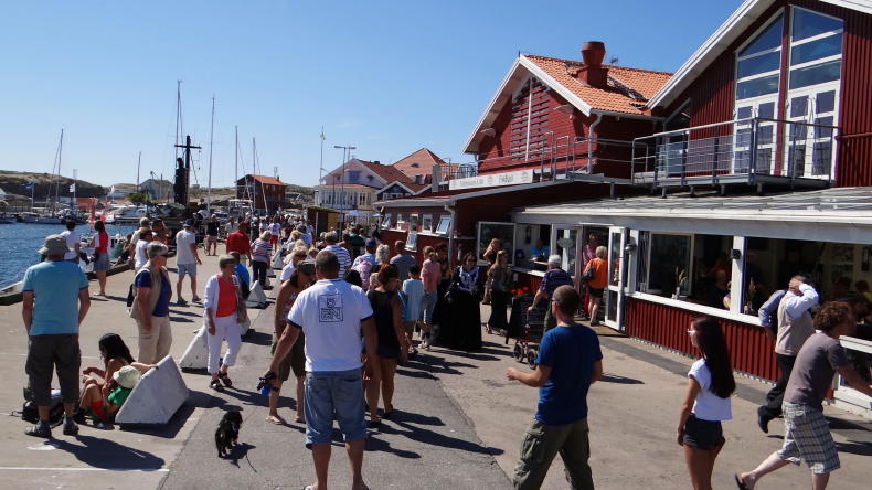Die kleine Insel Smögen in Bohuslän hat nur 1.300 Einwohner. Im Sommer sollen es mehr als doppelt so viele sein. Dazu kommen im Hafen einige Hundert Gäste auf Segel- und Motorbooten. Auf der Insel ist zur Hochsaison sehr viel los.
