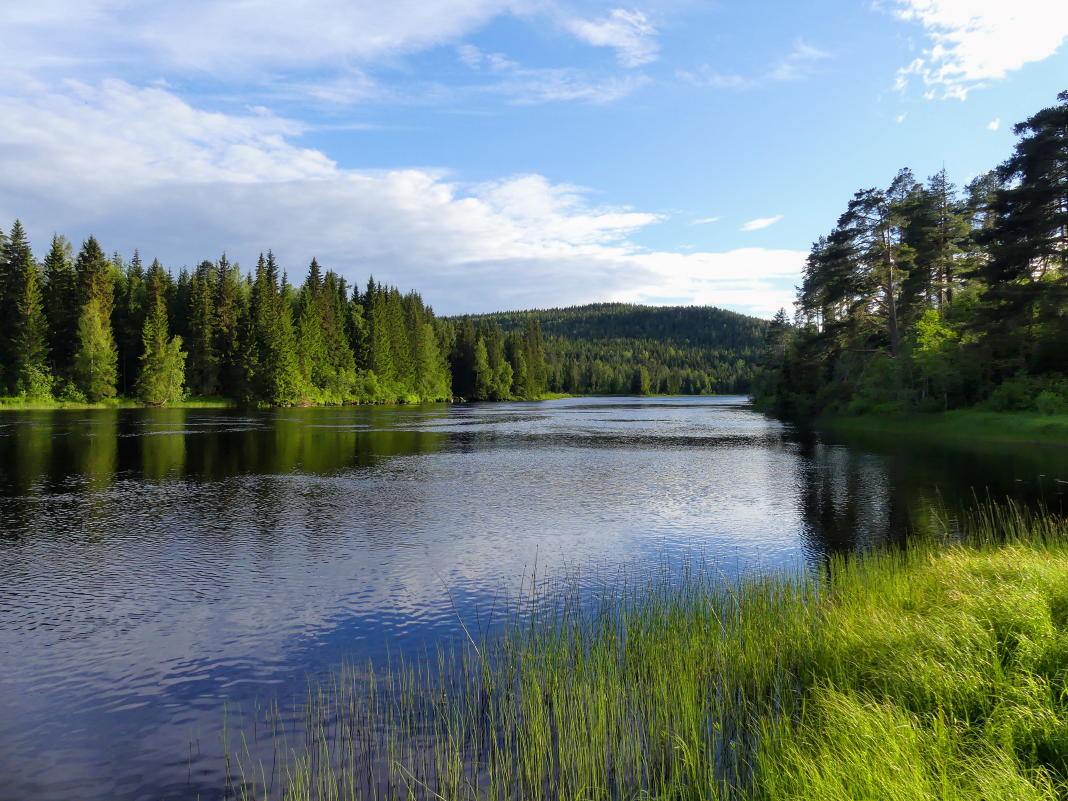 Der Västerdalälven, flussabwärts von der Brücke der E45 aus gesehen.