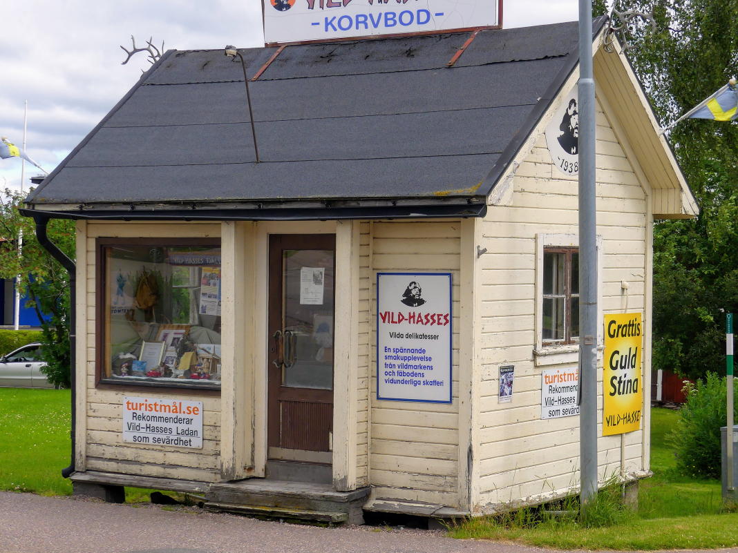 Überdies solltet Ihr einmal an der kleinen Hütte von Vild-Hasse vorbeigehen. Er ist bekannt in ganz Schweden, weil er seine Würste auf allen Märkten des Landes verkauft und ein Original ist. Seine Auftritte auf dem Jokkmokks marknad sind legendär. Mit vollem Namen heißt er Hasse Bengtsson. Er ist schon über 80 Jahre alt.