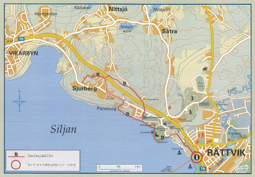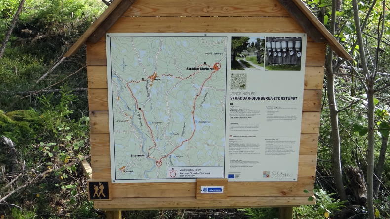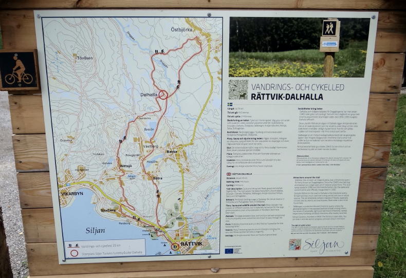 Die Wanderwege sind gut beschildert und mit einer kleinen Holztafel gekennzeichnet. An Parkplätzen und anderen zentralen Stellen sind überdies Schautafeln aufgestellt, die den Weg ausführlich beschreiben, aber auch Besonderheiten der Umgebung erklären (auch auf englisch). Viel Spaß beim Wandern am Siljan!