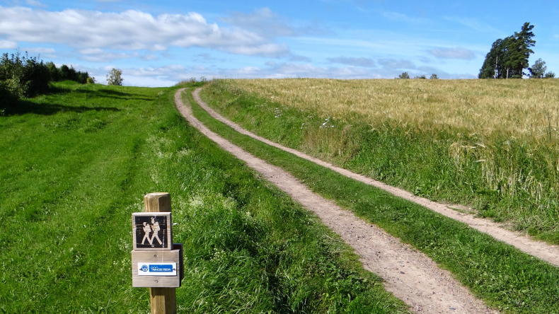 Mal Pfad, mal Asphalt, mal Schotterweg. Mit Steigungen. Schöne Aussichten über den Orsasjön.