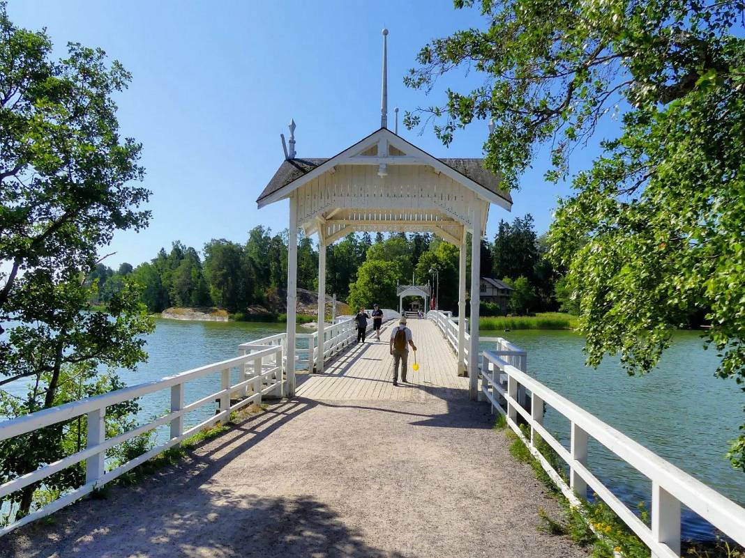 Die weiße Holzbrücke hinüber zur Insel ist wohl eines der beliebtesten Fotomotive Helsinkis.