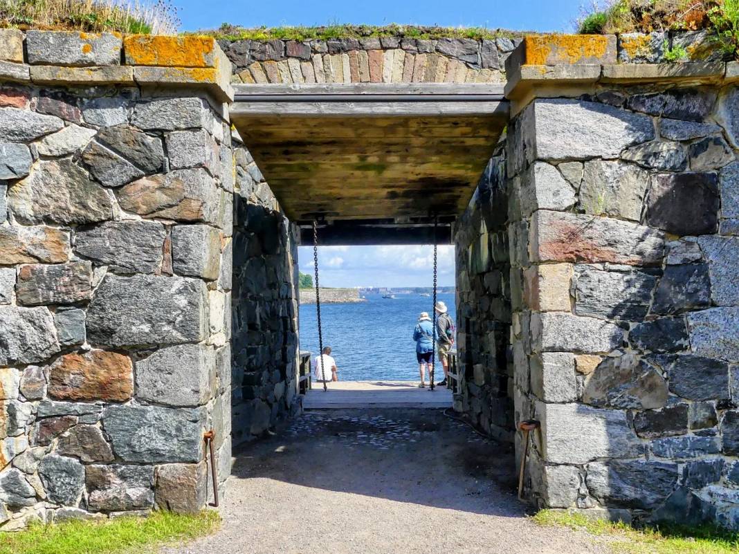 Die Königspforte heißt so, weil an dieser Stelle 1752 der Gründer der Seefestung mit seinem Schiff anlegte. Es war der schwedische König Adolf Fredrik. In den beiden darauffolgenden Jahren baute man daher eine Zeremonienpforte an dieser Stelle und nannte sie Königspforte. Sie ist monumental, hat prächtige Aussicht und ist ein schönes Fotomotiv. Das Bild oben auf dieser Seite habe ich dort gemacht.