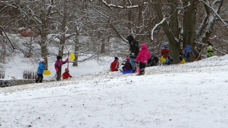 Auf dem Spielplatz Plikta: Die Spielsachen haben die Eltern übrigens nicht mitgebracht, sie werden zur Verfügung gestellt.