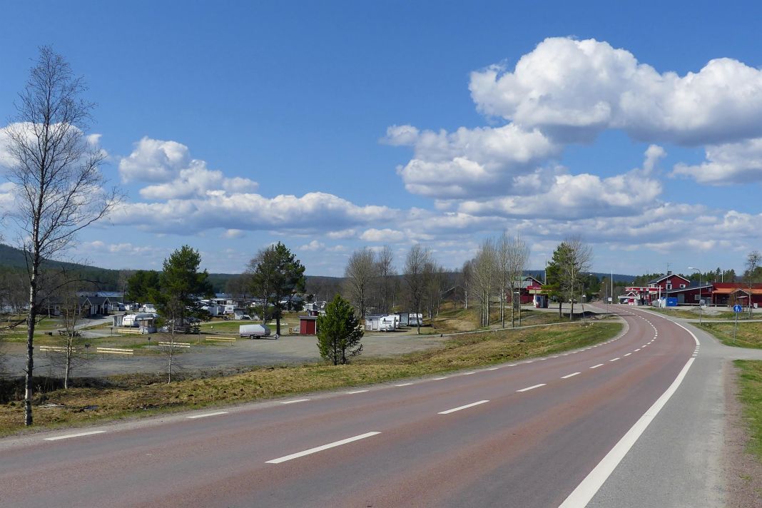 Im Zentrum von Lofsdalen. Links der Campingplatz, rechts der ICA. Ihr seht, dass die Straße hier viel besser ist als im ersten Bild.