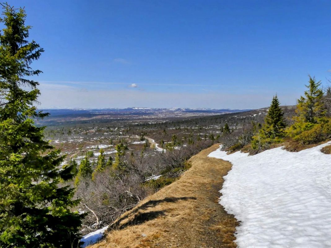 Vom Parkplatz aus könnt Ihr einen Weg laufen, der im Sommer sogar mit dem Kinderwagen funktionieren soll (Panoramaleden). Bei meiner Wanderung hingegen sackte ich an einigen Stellen noch bis zu den Knien im Schnee ein. Mal habe ich gelacht, mal geflucht. Die Aussicht war in jedem Fall gigantisch.