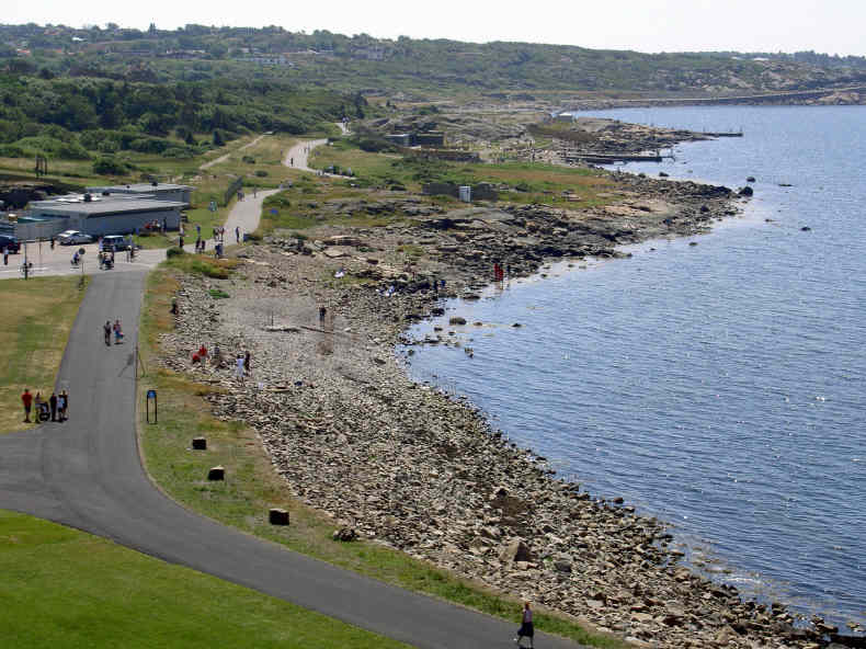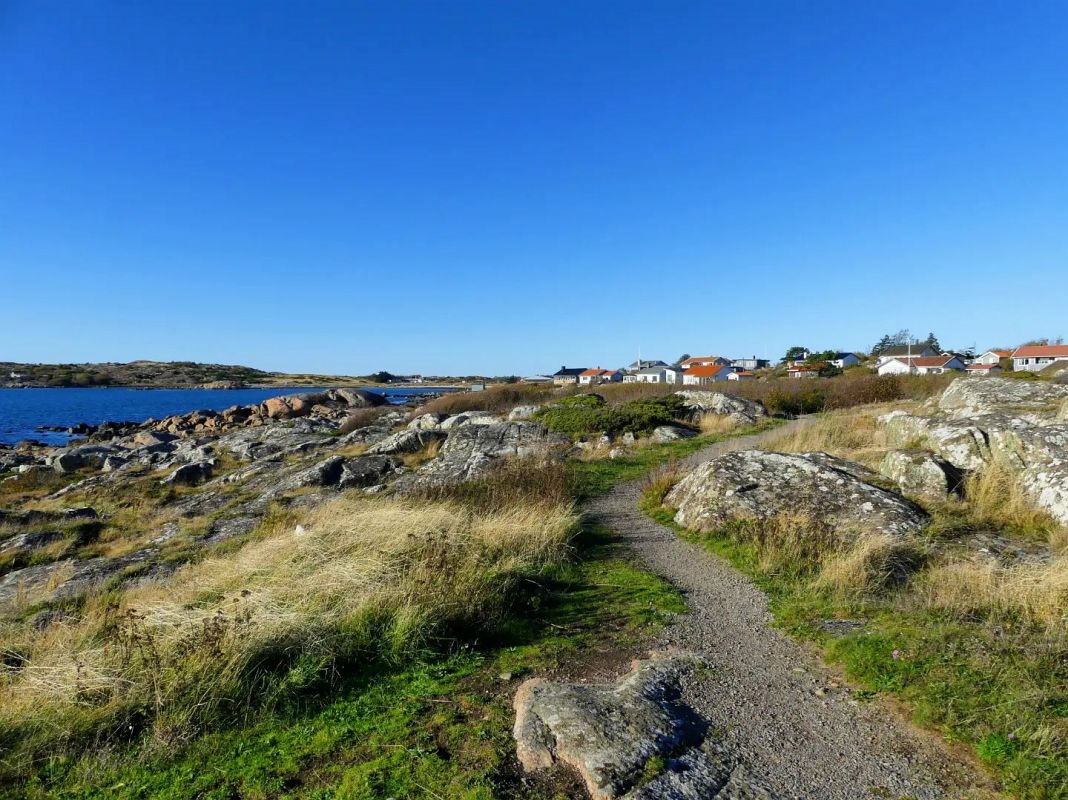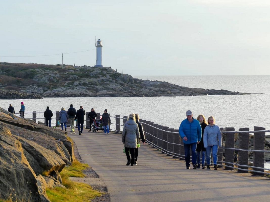Auf der asphaltierten Promenade kann man nicht nur gut spazieren gehen, sondern auch radfahren und joggen. In normalem Wandertempo braucht man rund eine Stunde für die 5 km lange Strecke – wenn man nicht zu oft wegen weißer Popos anhält, denn man passiert einige Nacktbadestrände auf dem Weg (und die Strände haben schöne Namen wie „Käringhålan“ und „Godahopp“).