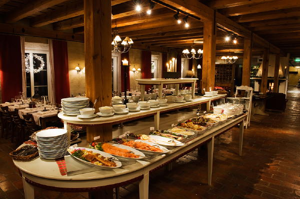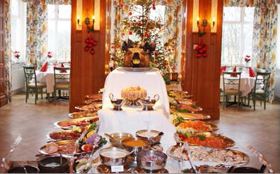 Bild ganz oben auf der Seite: Julbord bei Rejmyre Gestgifveri, 30 Minuten von Norrköping entfernt (Fredrik Schlyter). Typisches Restaurant-Julbord: Cecilia Lind, Bergendal Meetings. Bild Jansson frestelse: Abba Seafood. Bild Julskinka: Ann Lindberg, imagebank.sweden.se. Bild darunter: Getnö Gård. Letztes Bild: Djurönäset konferens & hotell.