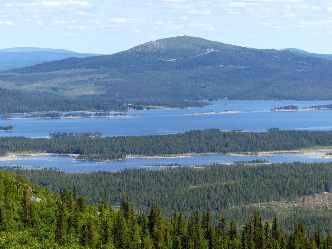 Insgesamt 8.727 Seen soll es geben und dazu noch einige Flüsse wie den Piteälven und den Laisälven. Überdies fließt der Skellefteälven mitten durch den Ort. Wenn man auf einen Berg steigt und nach unten blickt, liegt einem ein riesiger Schärengarten mit Inseln, Inselchen und Halbinseln zu Füßen. Wenn da nicht die (sanften) Berge wären, sähe es aus wie vor Stockholm.