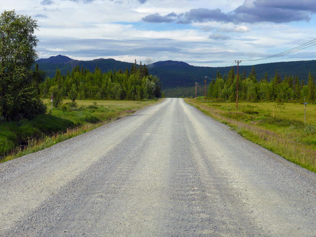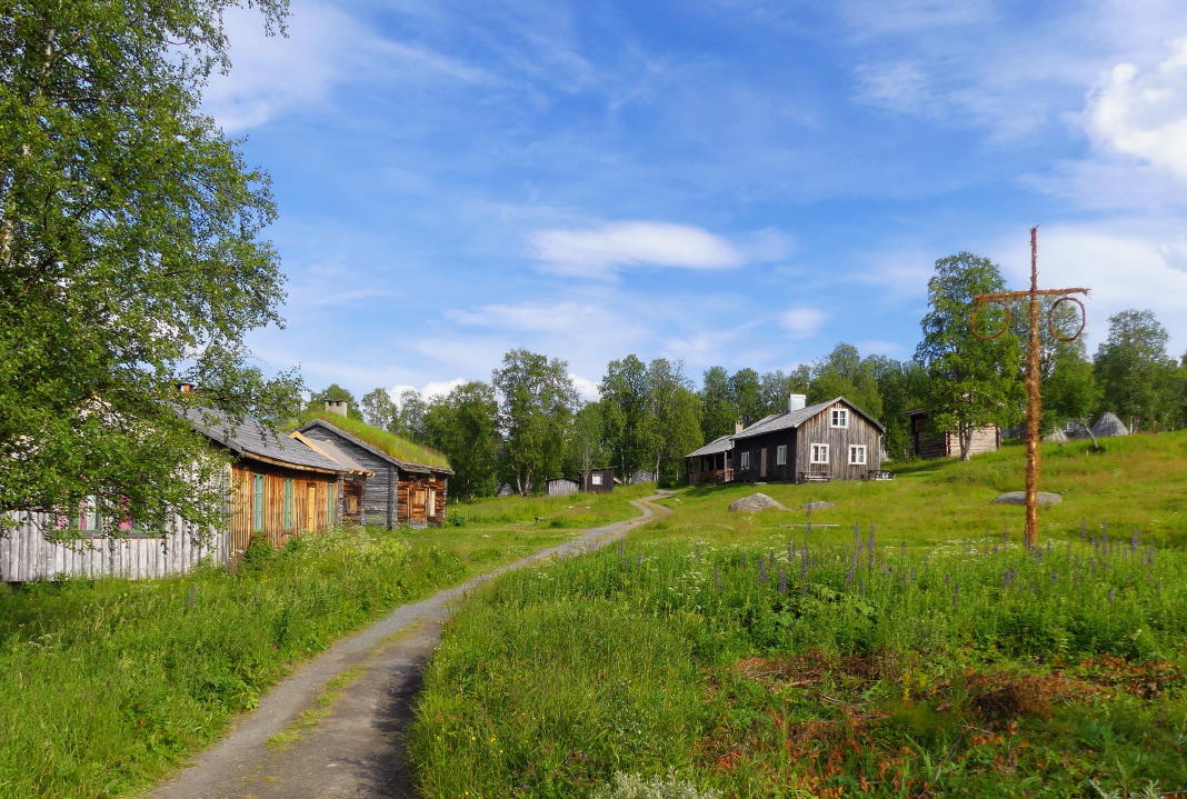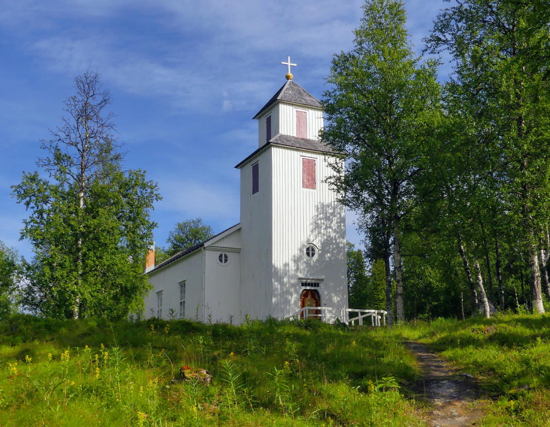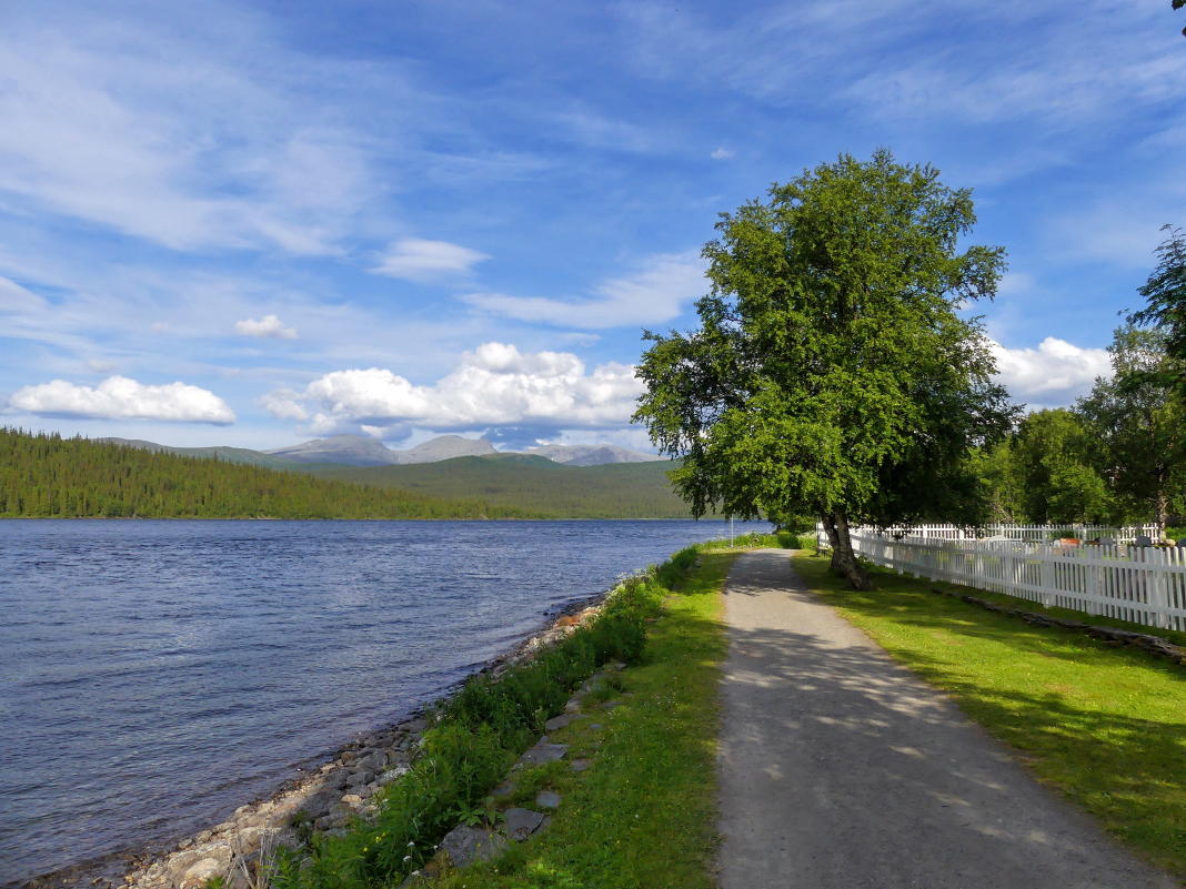 Blickt man am Kirchendorf vorbei, sieht man am Ende des Tals das Marsfjäll. Diese Bergkette ist Naturreservat. Der höchste Gipfel erreicht eine für diese Gegend in Lappland recht ungewöhnliche Höhe von 1.589 m.