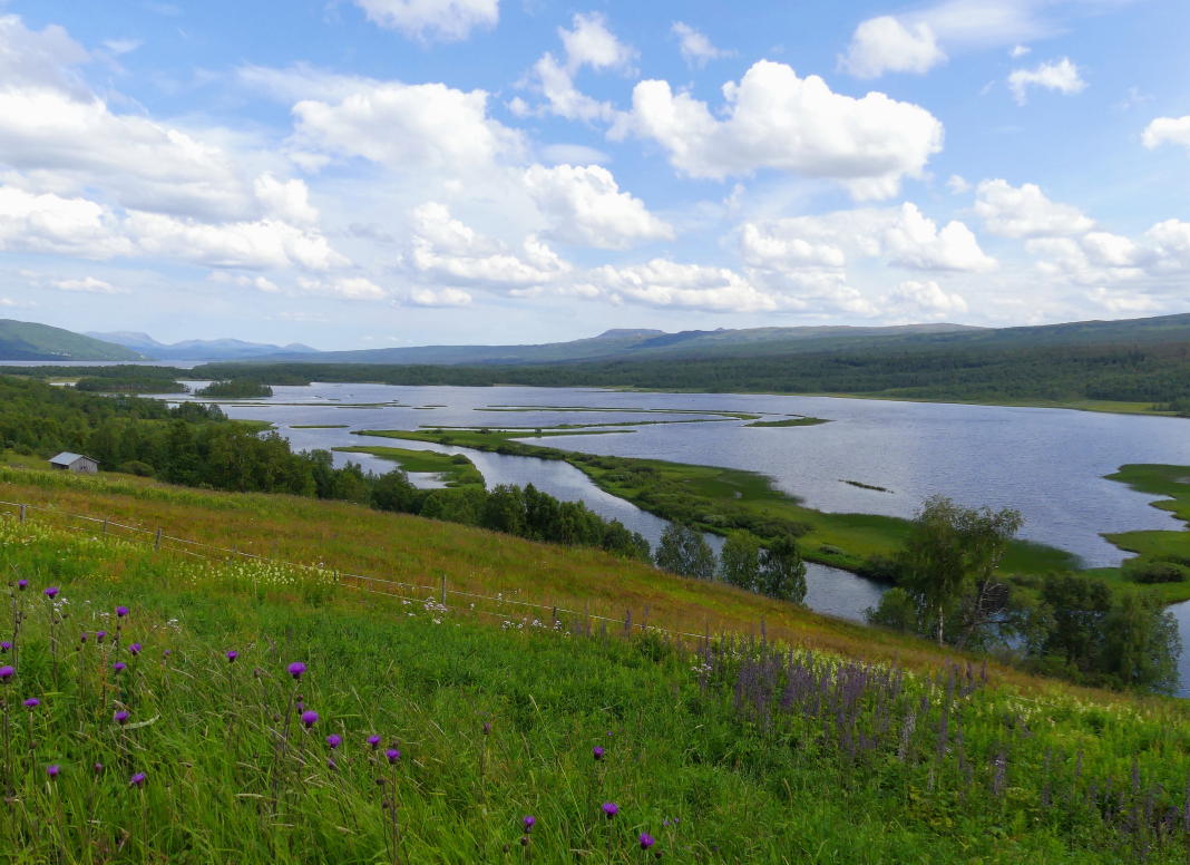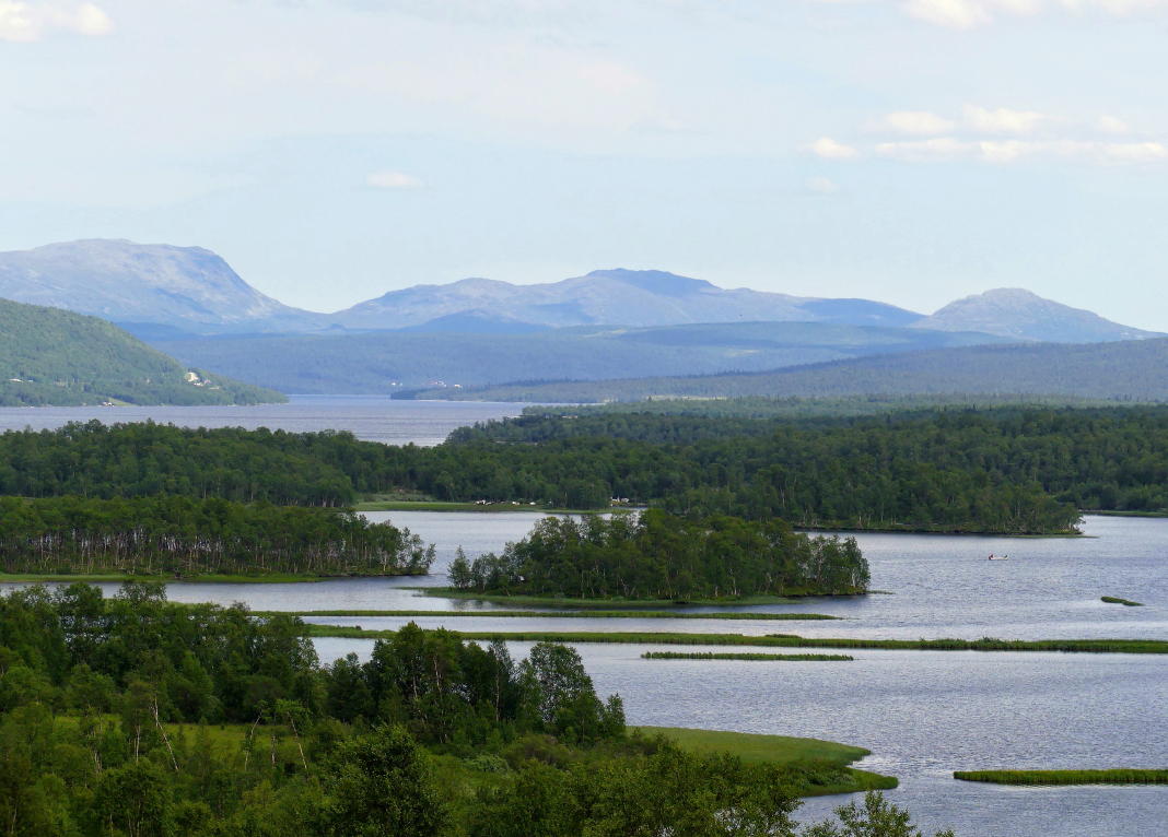Einige Kilometer westlich von Klimpfjäll: Blick von der Straße auf den Kultsjön