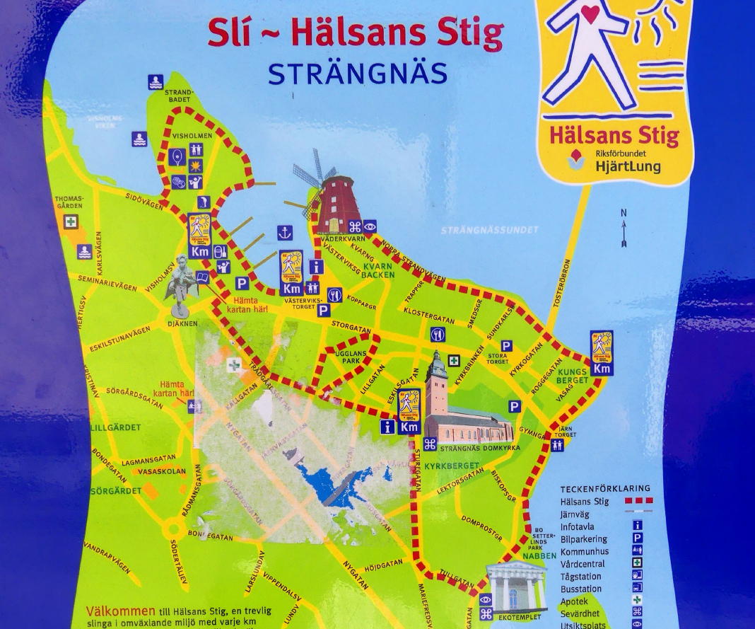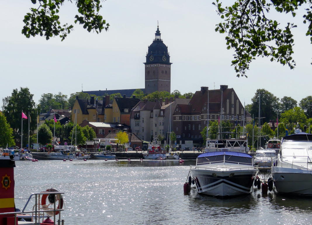 Strängnäs hat mir auf Anhieb gut gefallen. Im Zentrum gibt es eine große Parkplatzfläche (Hafenparkplatz an der Storgatan 38). Der Parkplatz ist leicht zu finden und gratis. Auch Wohnmobile können hier stehen. Wenn man aus dem Auto steigt, hat man schon alles vor sich: den Mälaren, eine Uferpromenade, den Gästehafen, Restaurants und – wendet man den Blick etwas nach oben – eine alte Holländerwindmühle auf der einen und den Dom zu Strängnäs auf der anderen Seite. Man fällt quasi aus dem Auto heraus mitten hinein in ein Bilderbuch.