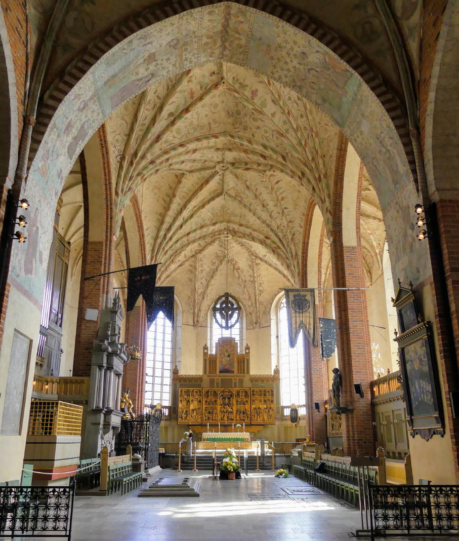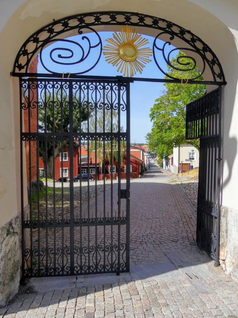 Vom Café mache ich mich zum Dom auf, dem zweiten Wahrzeichen von Strängnäs. Es geht z. T. recht steil bergauf. Durch schmale Gassen gelange ich schließlich durch ein eisernes “Löwentor” zum Dom zu Strängnäs. Der Dom ist eine von 15 Domkirchen, die man in Schweden zählt.