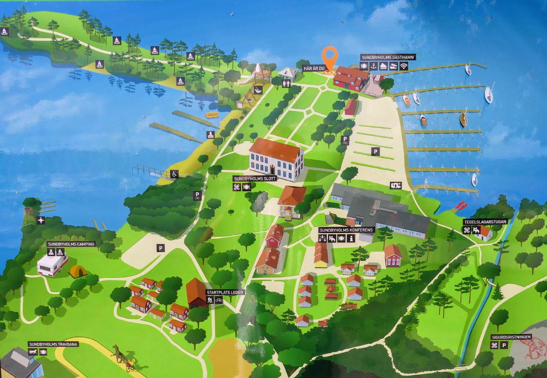 Sundbyholm gehört zu Eskilstuna und liegt ganz im Norden der Gemeinde. Um das Schloss herum sind am Mälaren Campingplatz, Badestelle und Gästehafen entstanden. Mit Blick auf den Hafen befindet sich hier auch ein beliebtes Ausflugslokal. Auf dessen Rückseite gibt es einen Kiosk mit Eisverkauf.