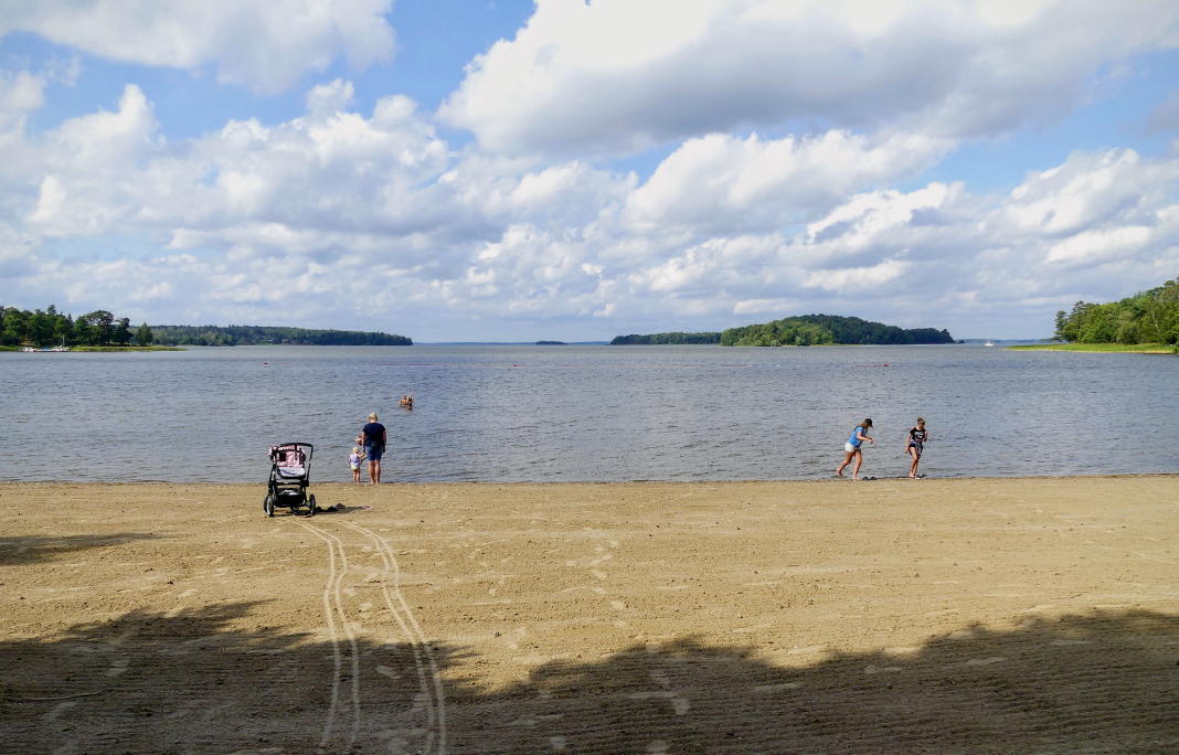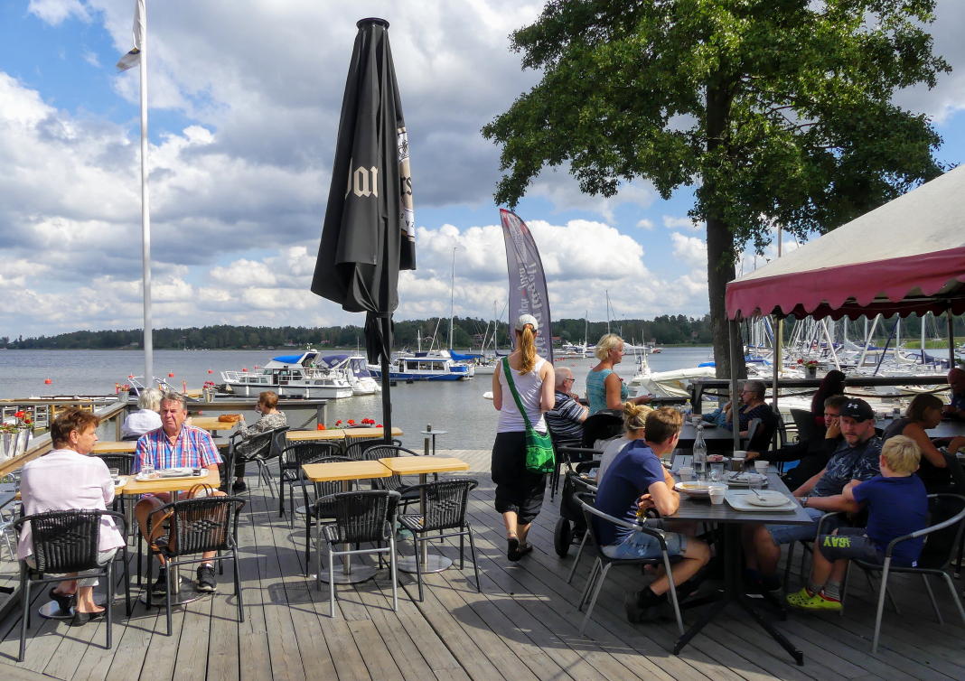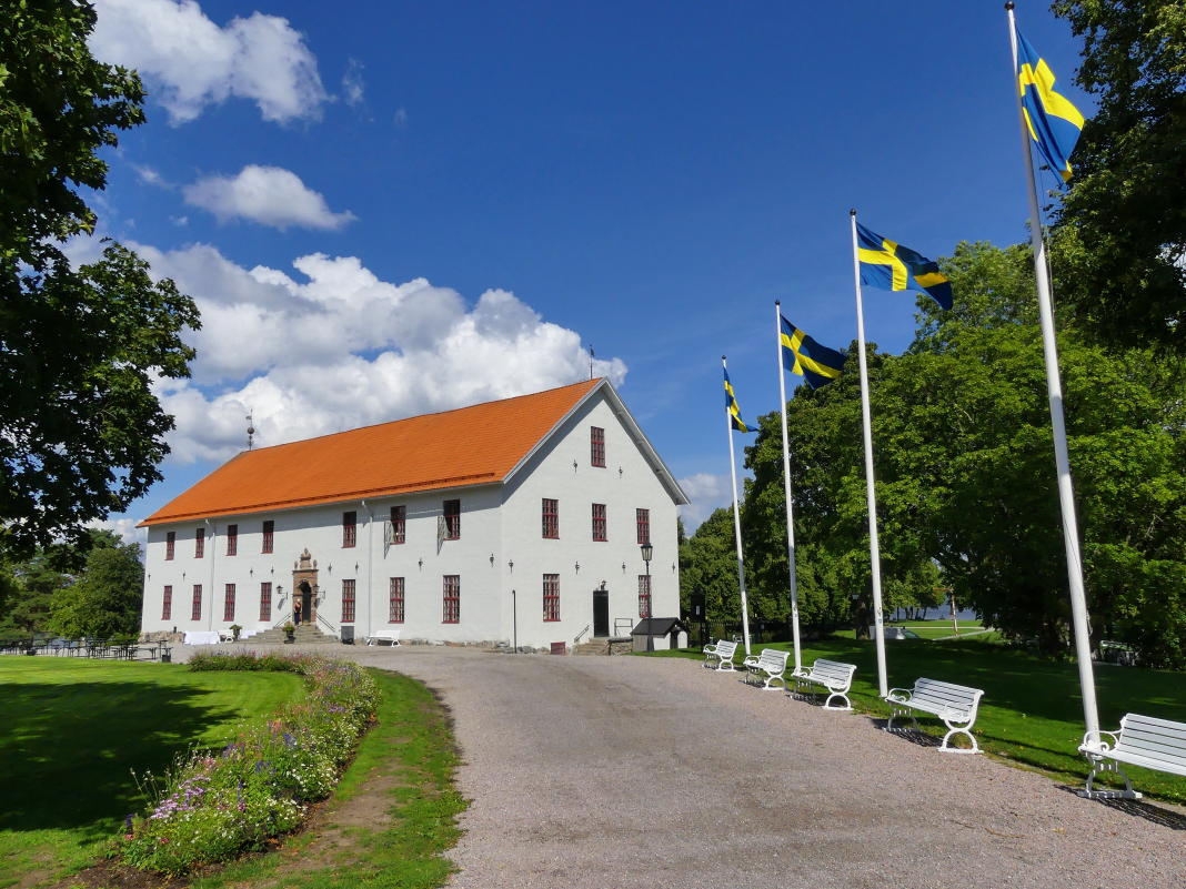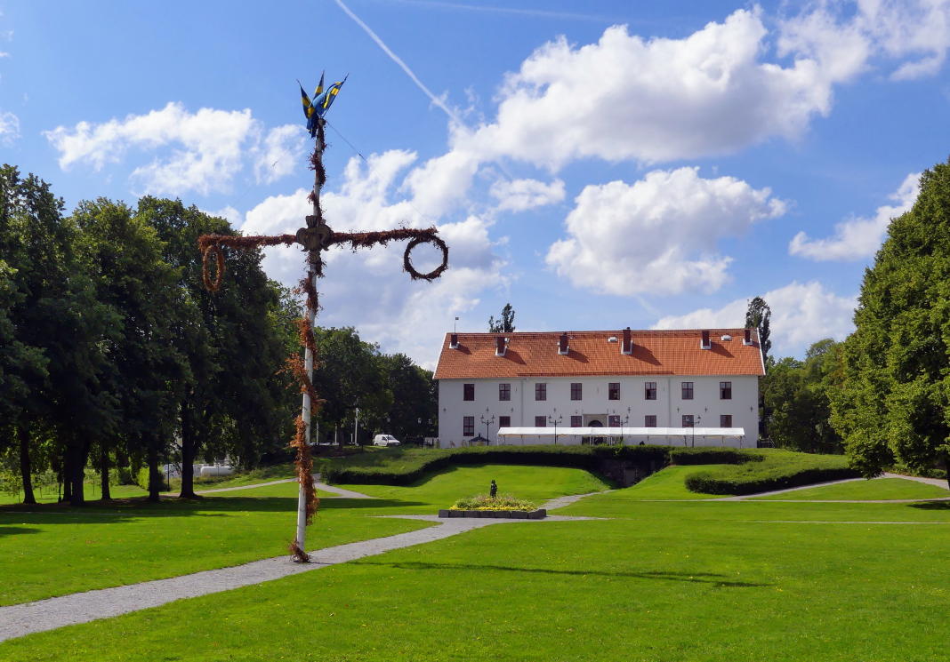 Das Schloss stammt aus dem frühen 17. Jahrhundert, hatte immer wieder neue Eigentümer und fiel Mitte des letzten Jahrhunderts der Gemeinde Eskilstuna zu. Heute ist es ein komfortables Hotel, das gern für Konferenzen genutzt wird. Als ich dort war, belebte auch eine herausgeputzte Hochzeitsgesellschaft das Treiben – herrlicher Kontrast zwischen Badegästen im Bikini und Hochzeitsgästen in feinsten Kleidern!