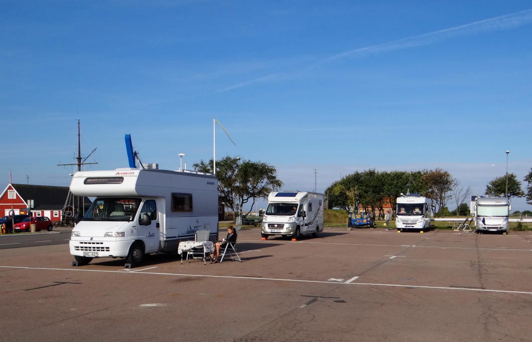 Skåne: Auch im Hafen von Höganäs findet Ihr beliebte Stellplätze. Höganäs liegt nördlich von Helsingborg auf dem Weg zum Kullaberg. Höganäs hat eine fantastische Markthalle, die allein schon einen Umweg wert ist.