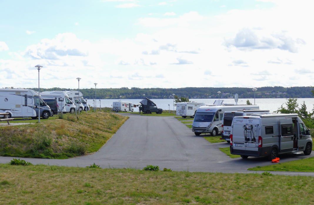 Västergötland: Diese schönen Stellplätze mit Blick auf den Vänern findet Ihr in Mariestad. Sie sind sehr populär. Zum Glück gibt es aber zwei große Flächen mit sehr vielen Plätzen.
