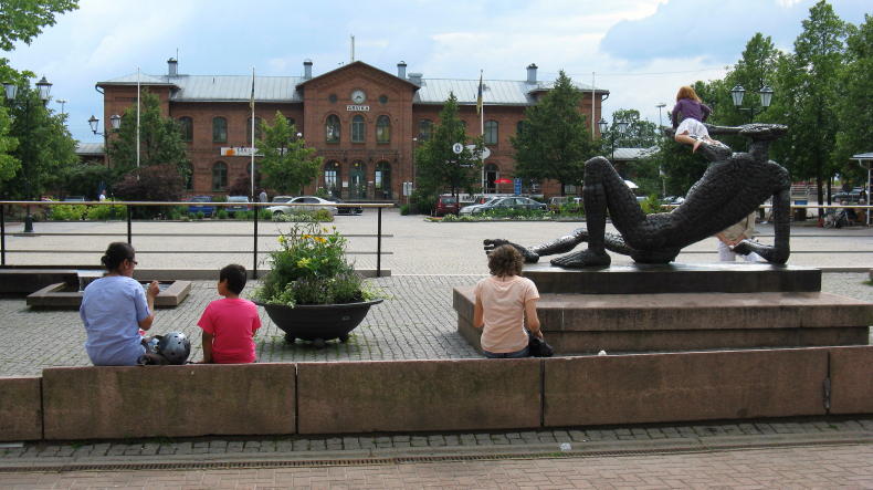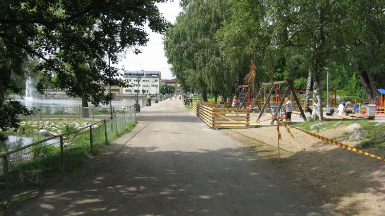 Was unseren Kindern sehr gefiel, war ein wunderschön angelegter Spielplatz am südöstlichen Ende des Stadtparks (mit großem Parkplatz, Zufahrt von Kyrkogatan). Den Spielplatz hatte man der Stadt wohl zum Jubiläum vermacht.