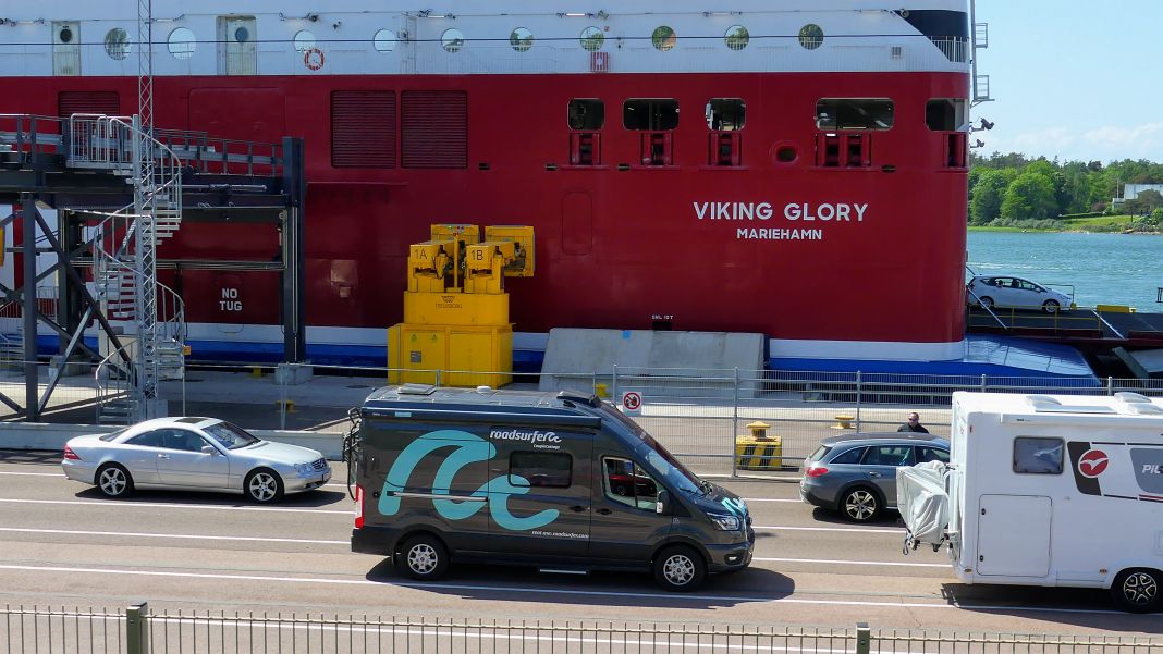 Hier ein Roadsurfer an der Fähre zwischen Schweden und Finnland. Gesehen in Mariehamn, Åland.