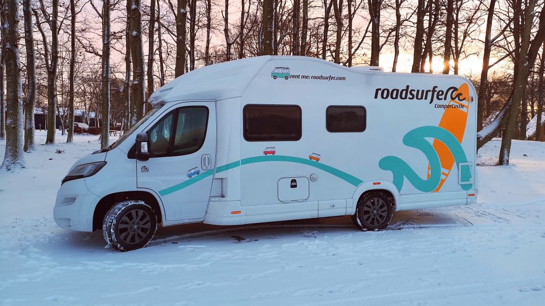 Während meiner drei Jahre im Kastenwagen habe ich Roadsurfer Fahrzeuge auch mehrfach im Winter gesehen. Hier in Landskrona Borstahusen. Ein deutsches Paar war mit dem Fahrzeug auf dem Weg zum Wintermarkt in Jokkmokk unterwegs.